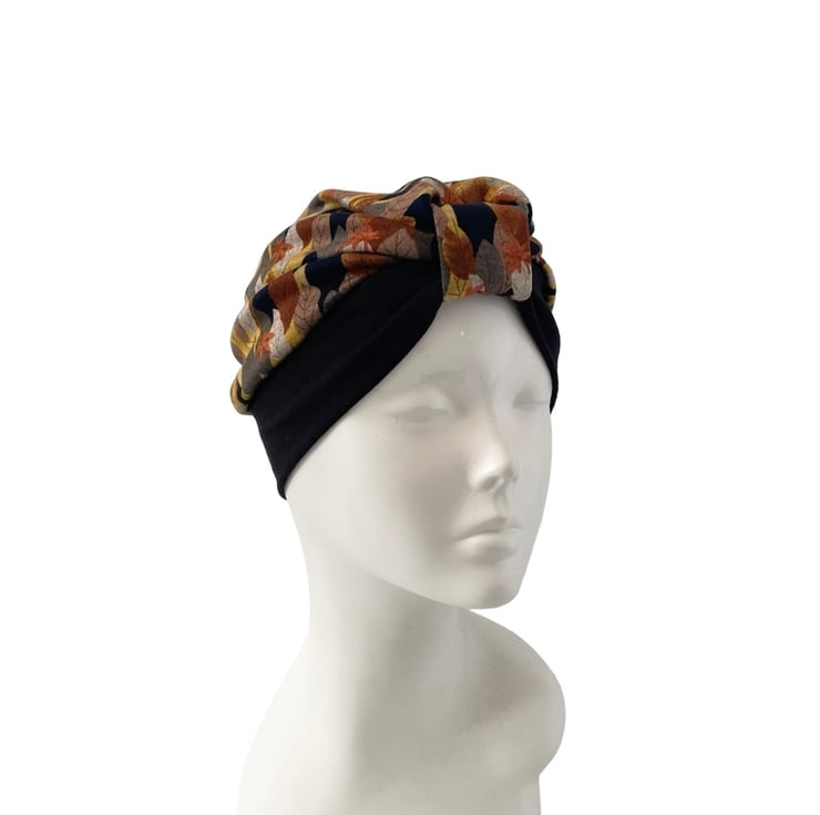 This front knot turban will fit standard adult's head (21''-23'').