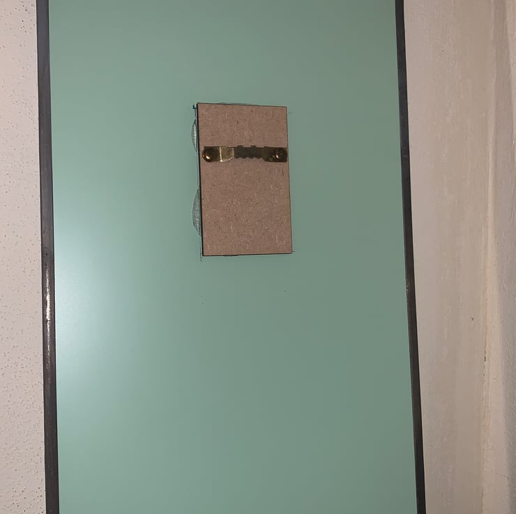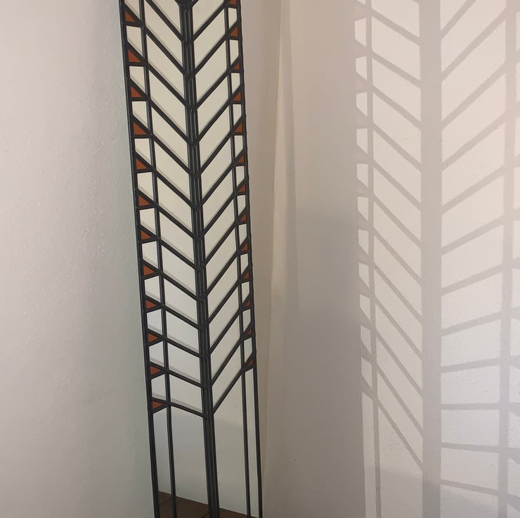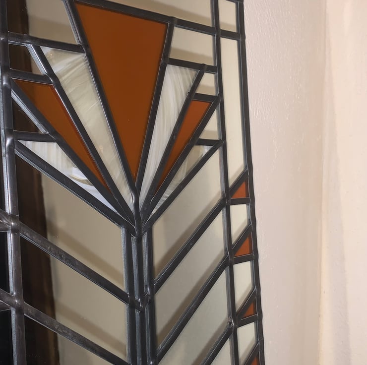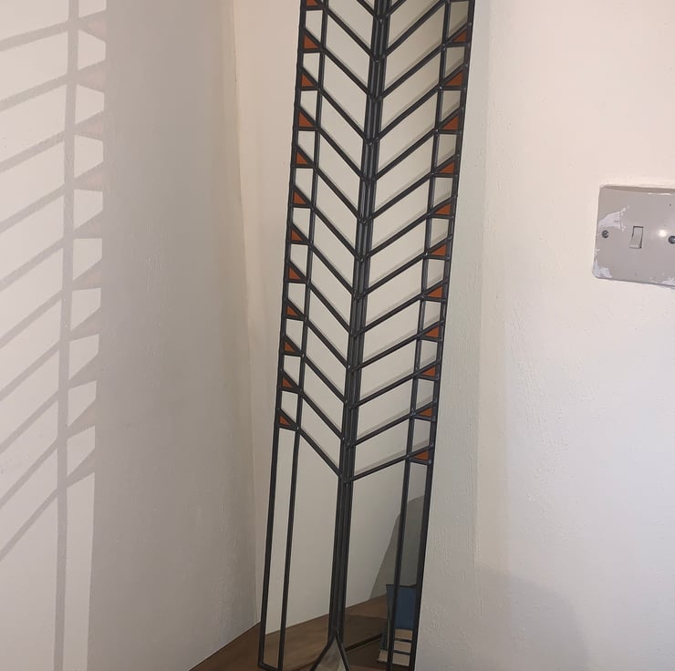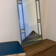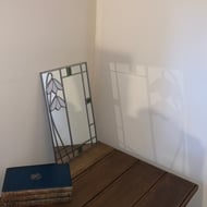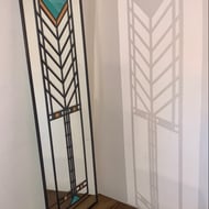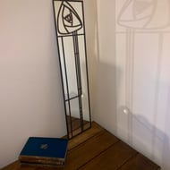 This beautiful mirror in the style of Frank Lloyd-Jones measures 91cm long by 20cm wide. Comes ready to hang on your wall.