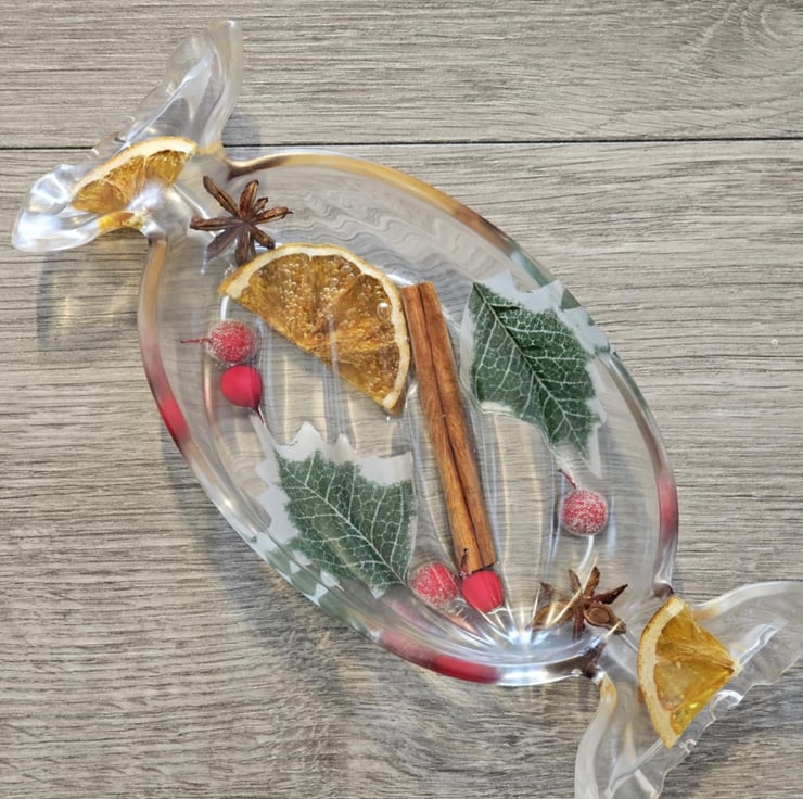 Christmas themed resin sweet tray Christmas table centrepiece 23cm by 11cm