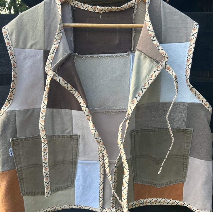 Patchwork denim waistcoat - Neutral tones - Upcycled