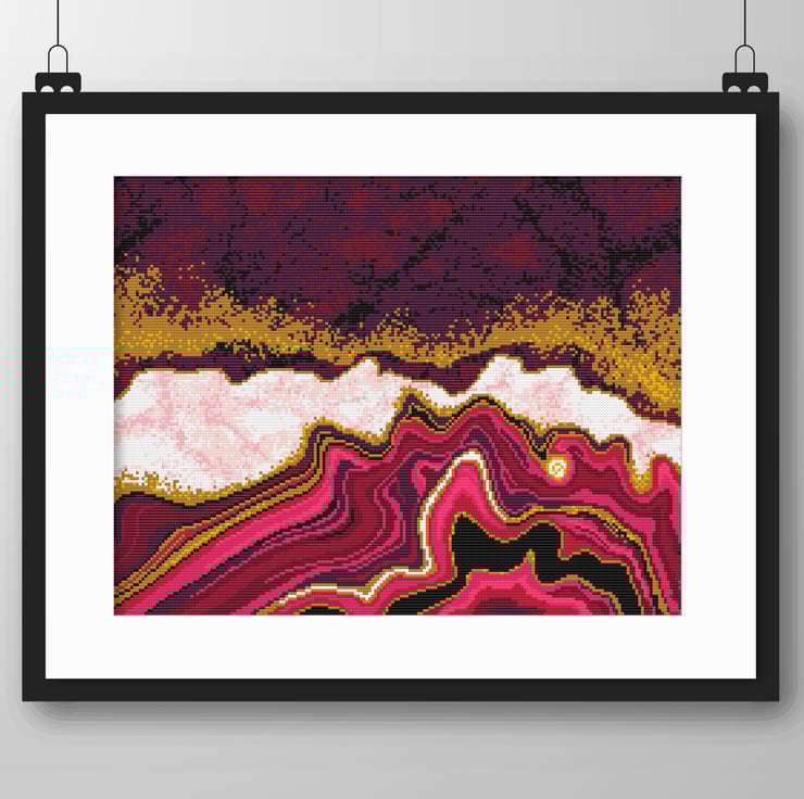 Cross Stitch Shimmering Gold and Pink Agate marble - Modern Abstract cross stitch wall art - design by Vivsters - PDF counted chart 229B