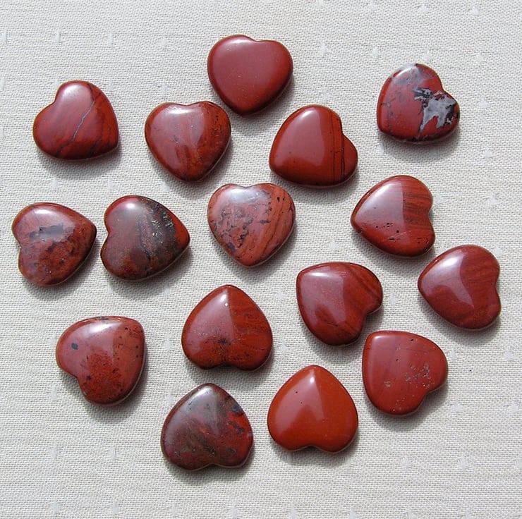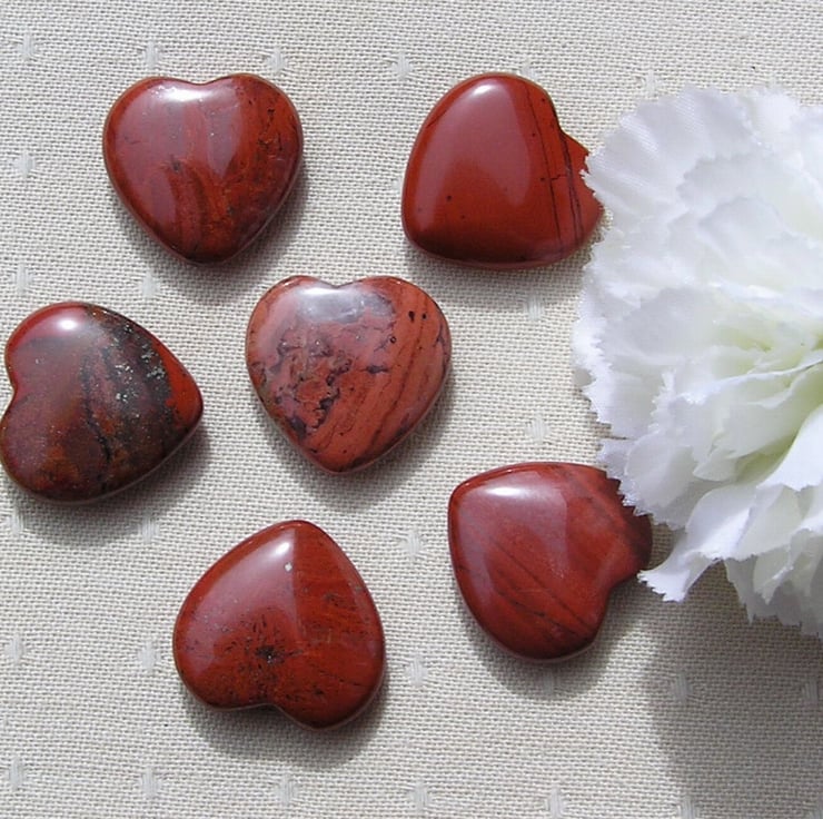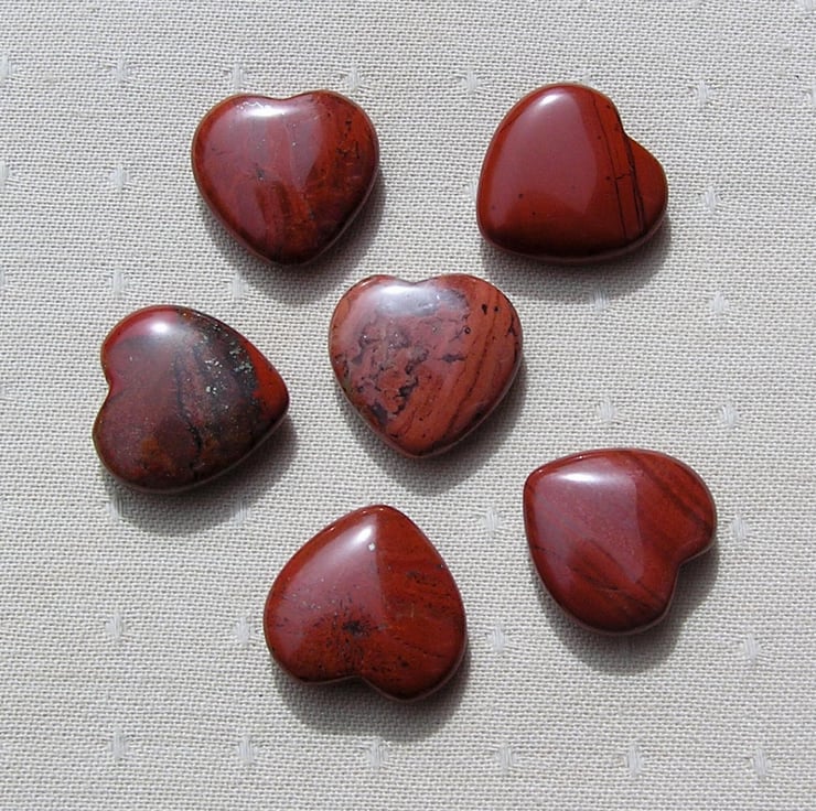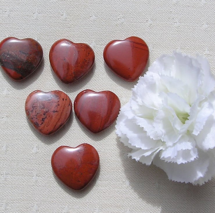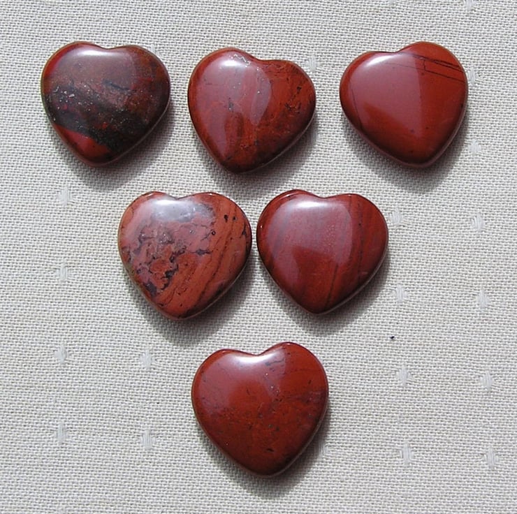 6 (Six) Beautiful Red Jasper Solid Gemstone Crystal Hearts