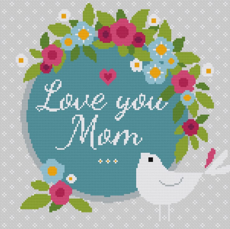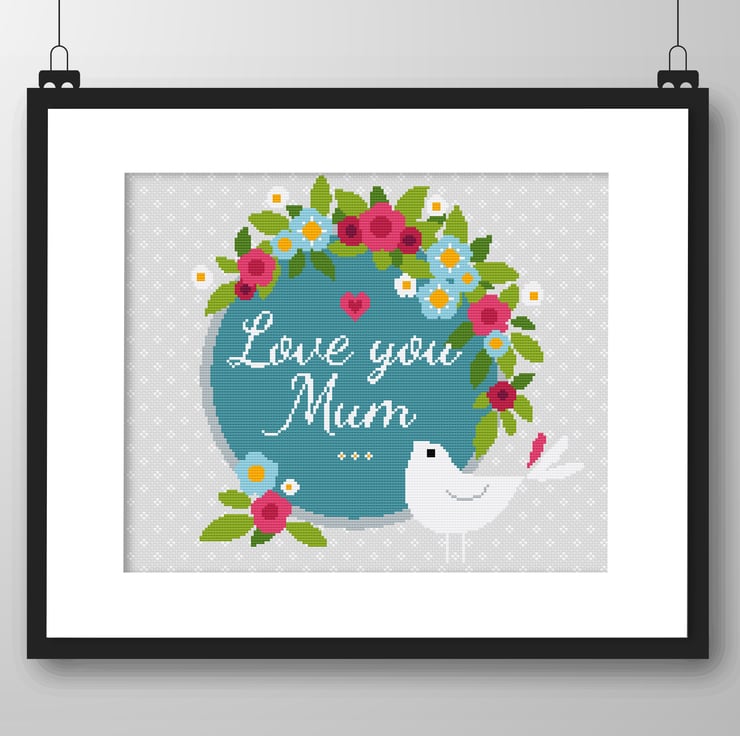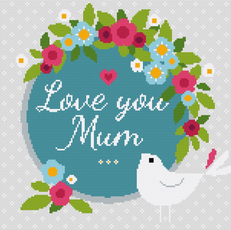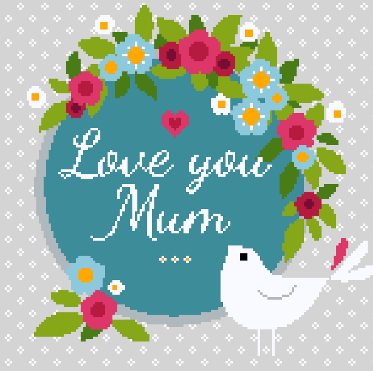 Love you Mum - Mother's Day cute baby bird - Celebrate Mom blossom/floral counted cross stitch/PDF chart by Vivienne Powers - 232