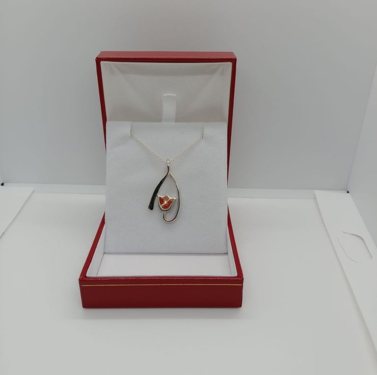 Once the pendant was fully hallmarked by sheffield assay office i glass enameled the Tulip flower with a mix of colours, creating the beautiful two colour tulip.