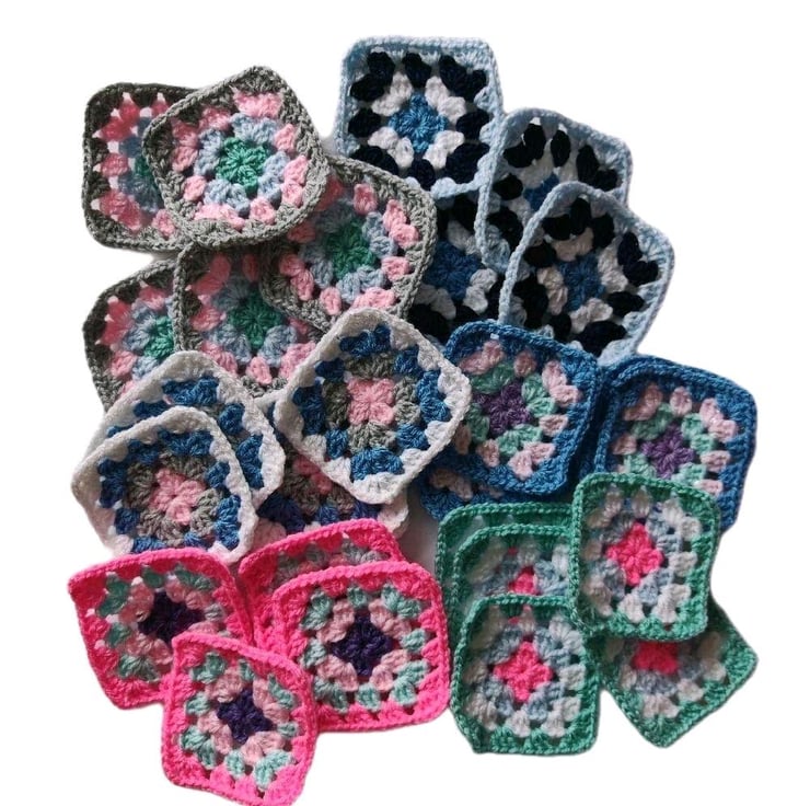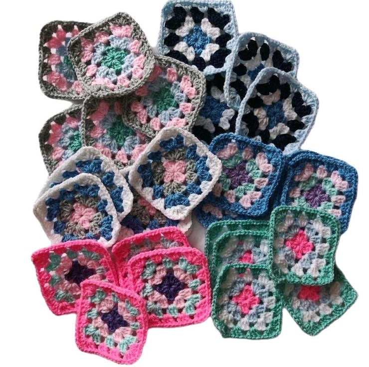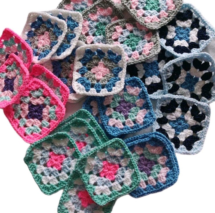 Mix and match to suit your vision! 20, 40, 60, 80 or 100 Crochet Granny Squares.
