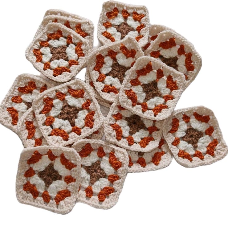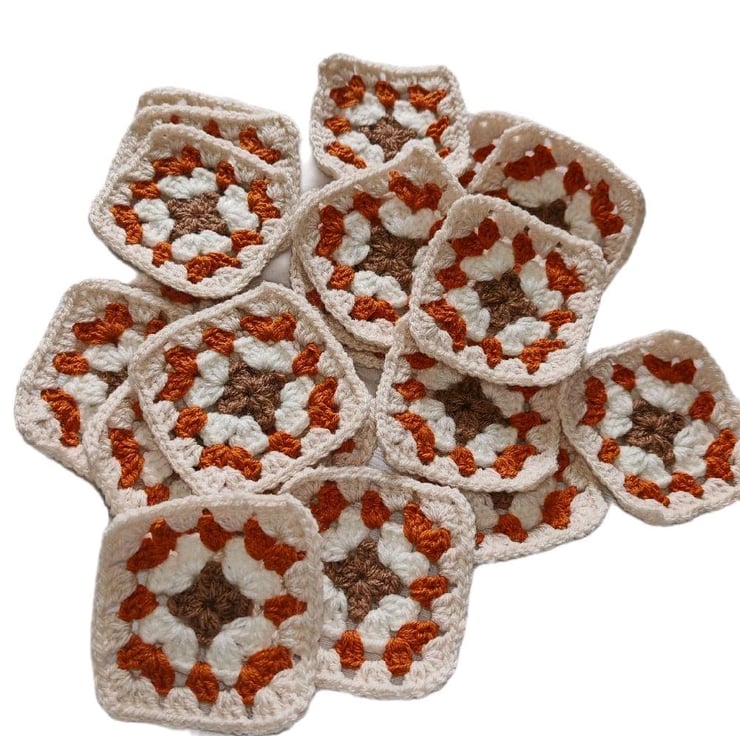 The product is a set of crochet granny squares in a Autumn Acorn Glow