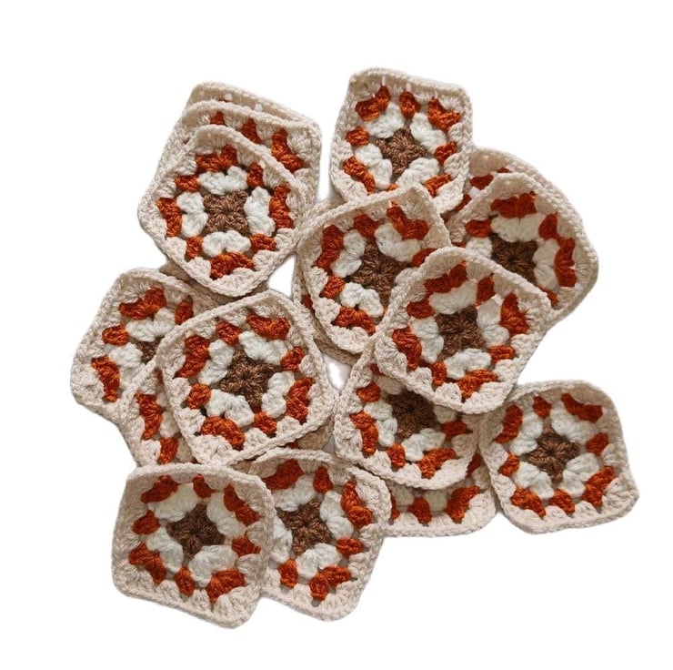 (creamy off-white, warm rust orange, rich cocoa brown) Perfect for these cozy granny squares evokes crisp fall walks, scattered acorns, and soft harvest light.