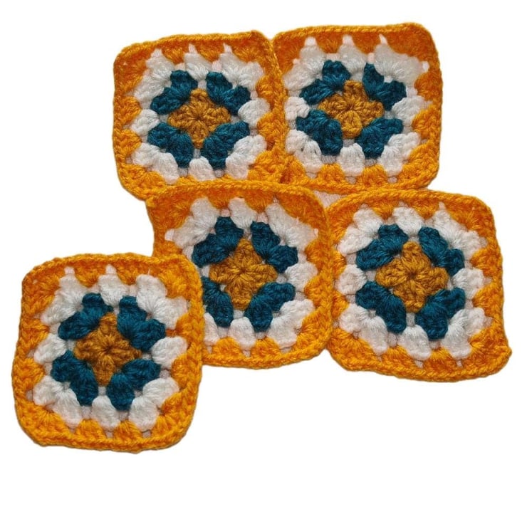 Crochet Granny Squares Sunset Lagoon Fusion Colour Scheme 3-inch Size