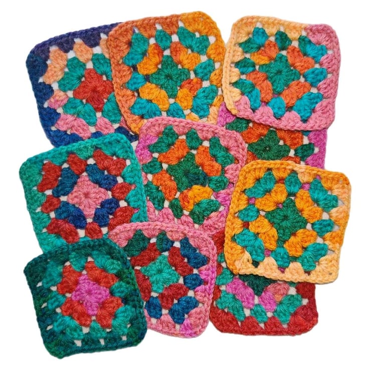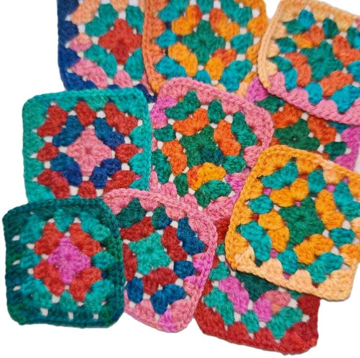 Crochet Granny Squares Retro Fiesta Pop Colour Scheme 3-inch Size