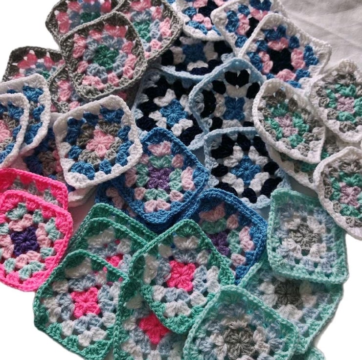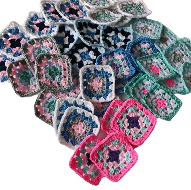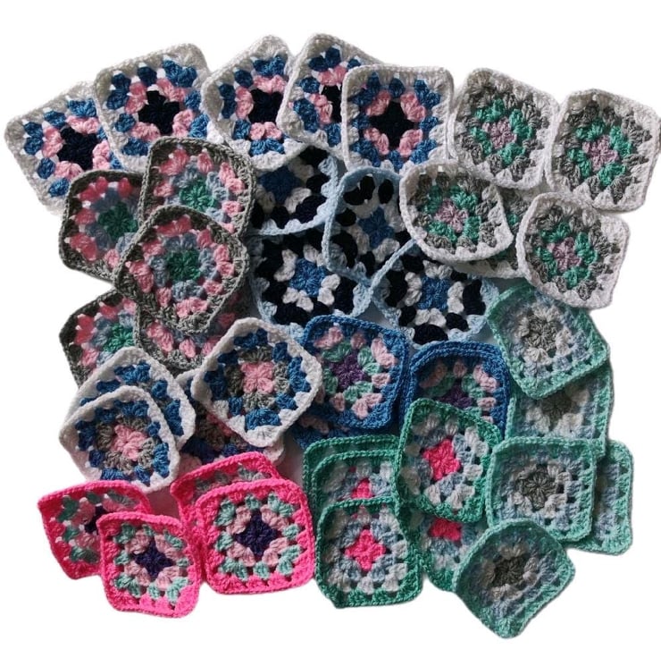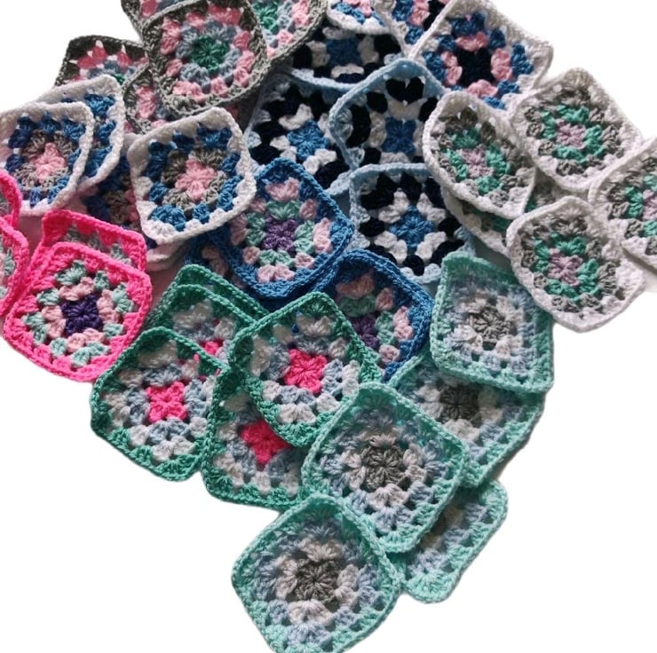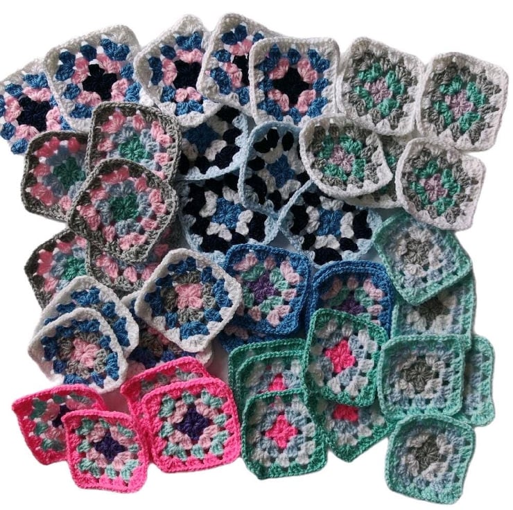 - Quantity: 20, 40, 60, 80 or 100 individually unique granny squares (exact count may vary slightly based on final selection message me for a custom count!)