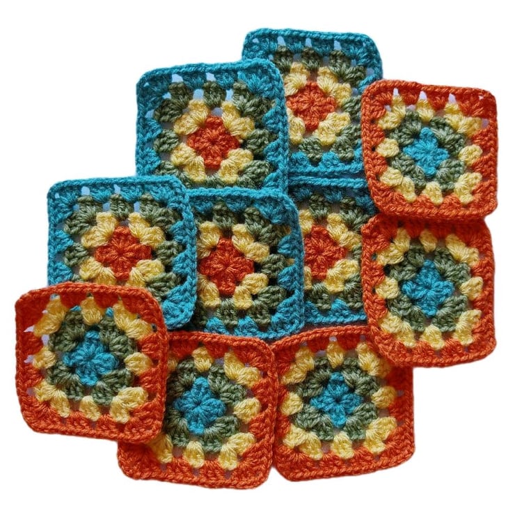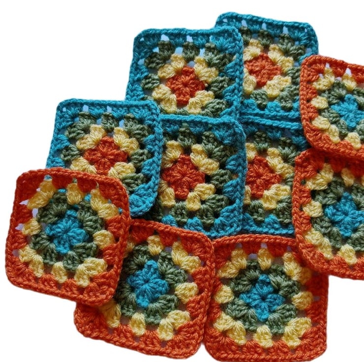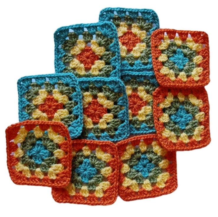 Handmade 3-Inch Crochet Granny Squares - Sunset Lagoon Colorway - Boho Patchwork for Blankets, Coasters & Crafts