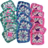 The product is a set of crochet granny squares in a Lemonade colour scheme, each measuring 3 inches in size. Made in the United Kingdom, these multicoloured squares are perfect for creating a variety of crochet projects with a unique and vibrant design. Whether you are looking to make a colourful blanket, a decorative piece for your home, or a stylish accessory, these crochet granny squares provide a versatile and eye-catching option for your crafting needs.