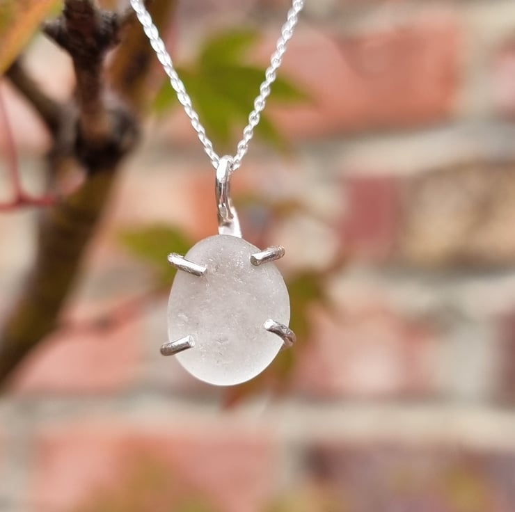 Gorgeous little seaglass pebble. It was found on Seaham beach in the North East of England and is just waiting to be loved. It has a sterling silver hand made pebble hugger and includes a 16/18inch sterling silver chain