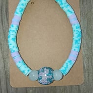 Each individual bracelet is hand crafted using a unique mix of clay polymer beads, charms and beads threaded onto strong, stretchy, clear jewellery thread. The set of three is carefully coordinated using a shared colour palette making a very pretty adornment.