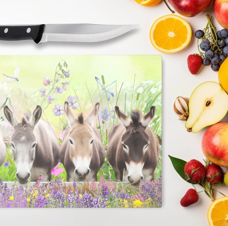 Celebrate friendship and nature with this heartwarming Just Bloomin’ Pals Horse Friends glass chopping board. Featuring a delightful design of four charming horses head down for an eating treat of blooming flowers, this piece captures the gentle spirit of companionship and countryside beauty.