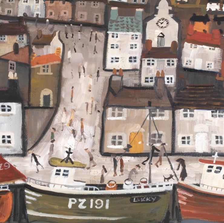 Alan Furneaux Art. Vibrant Cornish Harbour PosterPrint.High Gloss in A3 Size
