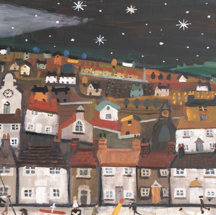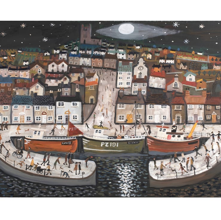 A Vibrant High Gloss Art Poster Print by Alan Furneaux of a night time scene of a Cornish Harbour. Comes in a cello wrap and flat packed to your door.