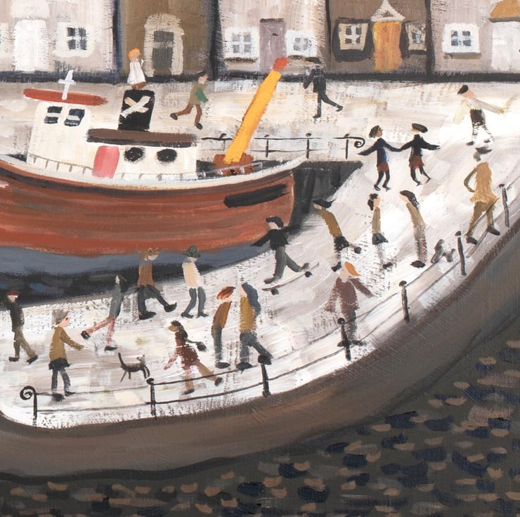 I like the idea of a safe harbour. With all the little people going about there day it brings this image to life.