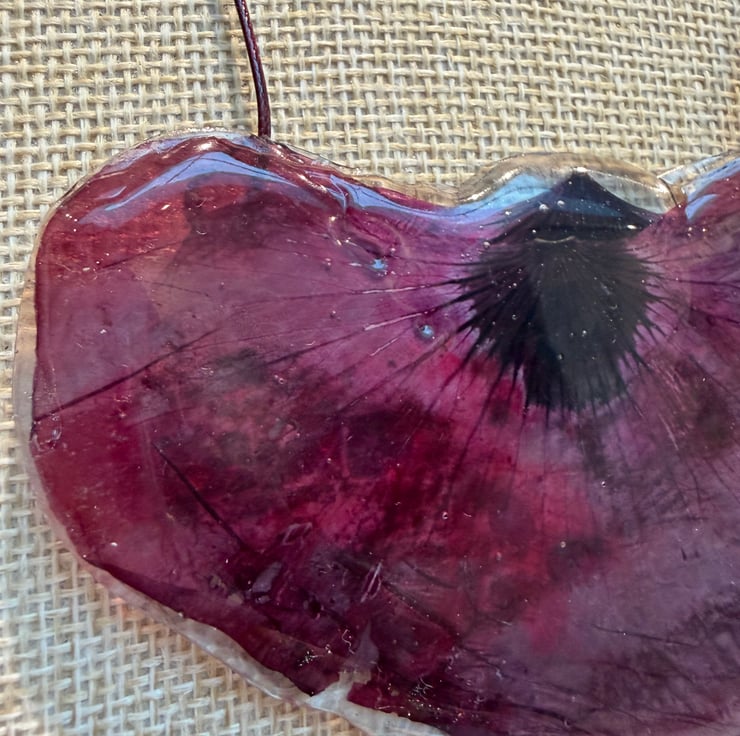 Real Cornish poppy petals, I’ve layered them with resin and finished them of with waxed cord and a pop clasp to make a beautiful necklaces