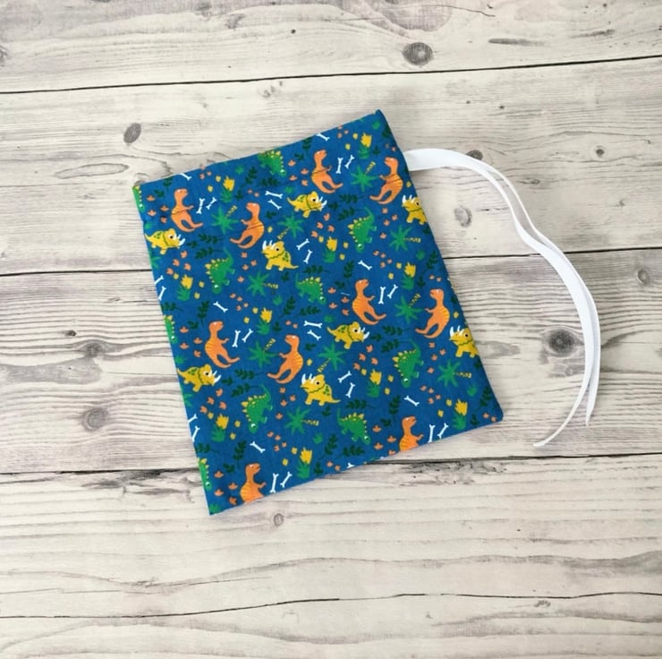Blue Dinosaurs Fabric Drawstring Gift Bag: Small Present Wrap.