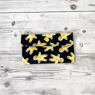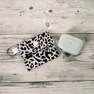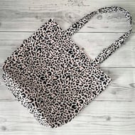 Polycotton pouch, lined and a layer of interfacing in between the fabrics. It features a snap closure to keep your items secure.