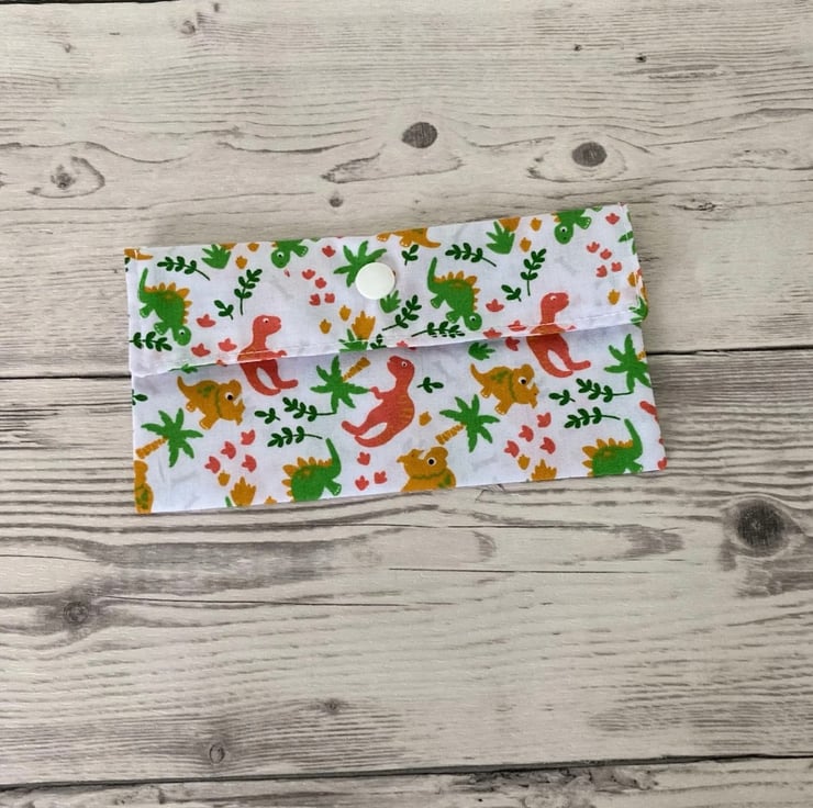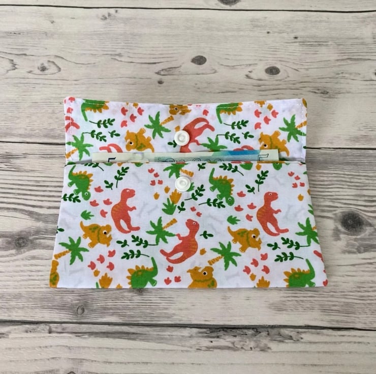 White Dinosaurs Fabric Money Wallet: Bank Note Gift Pouch.