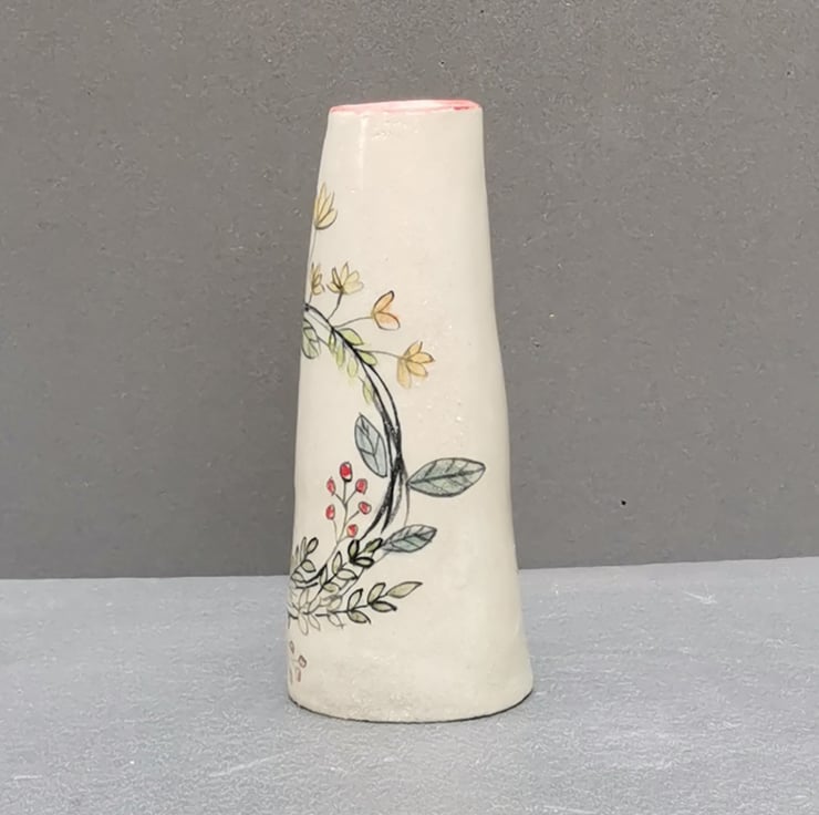 Stoneware vasewith hand-painted design by Kathleen Hepworth