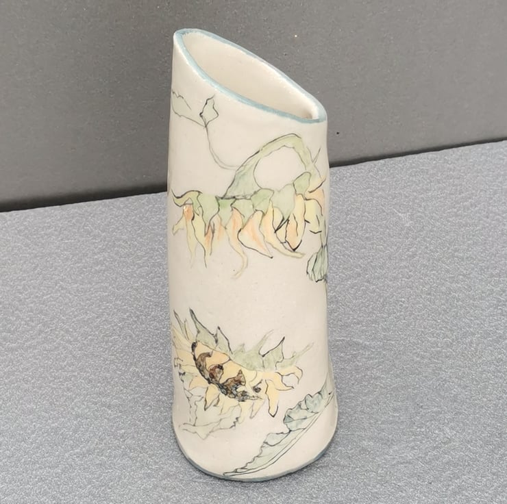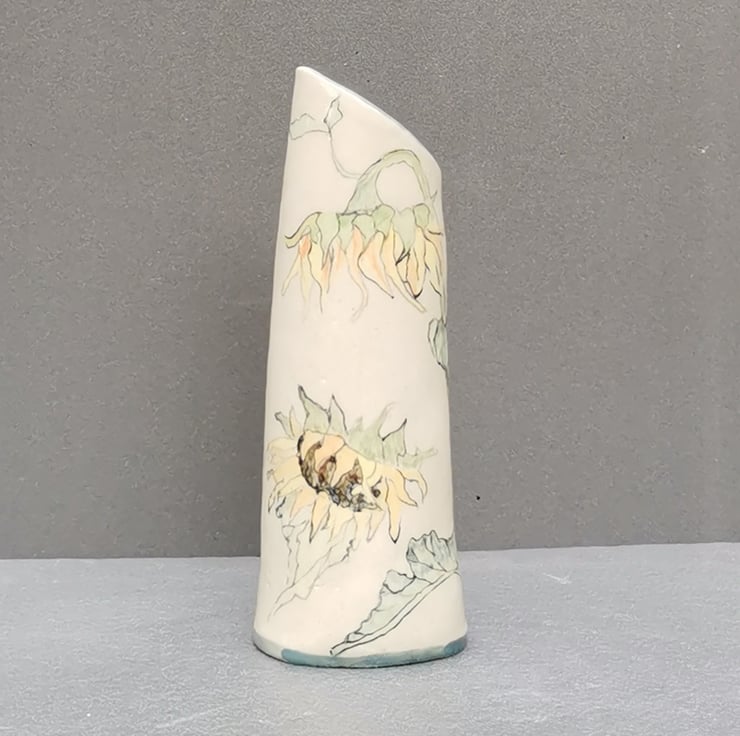 Stoneware vase with hand-painted design by Kathleen Hepworth