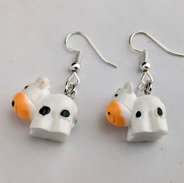 20x15mm resin spotted cow earrings with hypo allergenic hooks. In an organza gift bag.