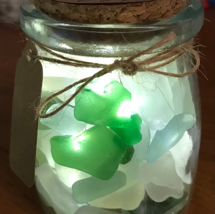 Each Sea Glass Jar Light begins with a quiet walk along the shore — collecting bits of sea glass smoothed by years of tides and time. Every piece has its own journey: once part of something ordinary, now transformed by the ocean into something beautiful and new.