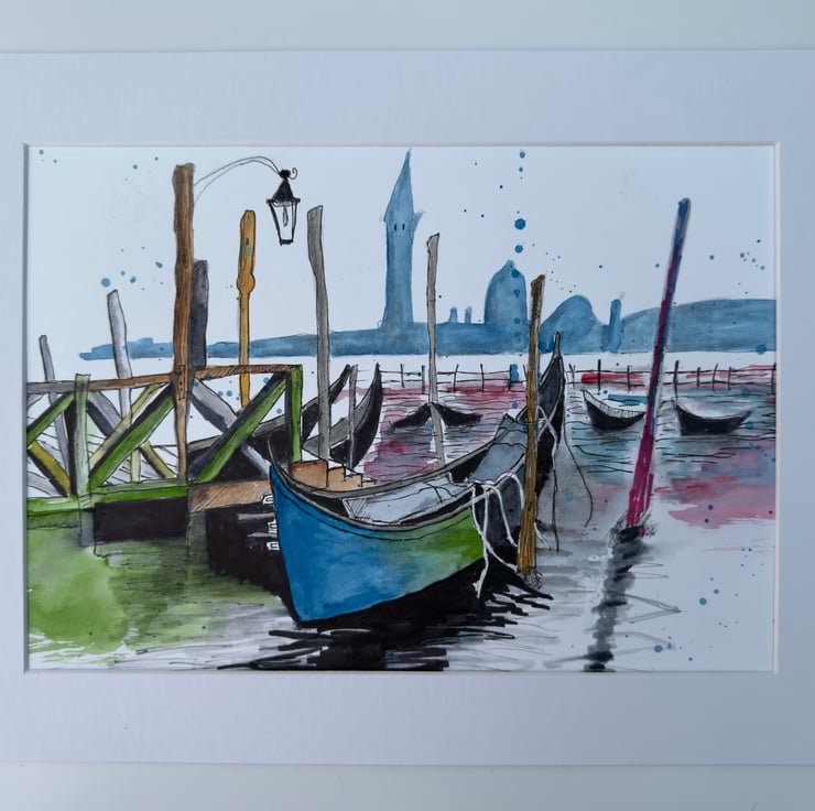 Watercolour and ink original painting mounted using 14 x 11 inch mount (A4 aperture). FRAME for illustration purposes only - not included in sale.