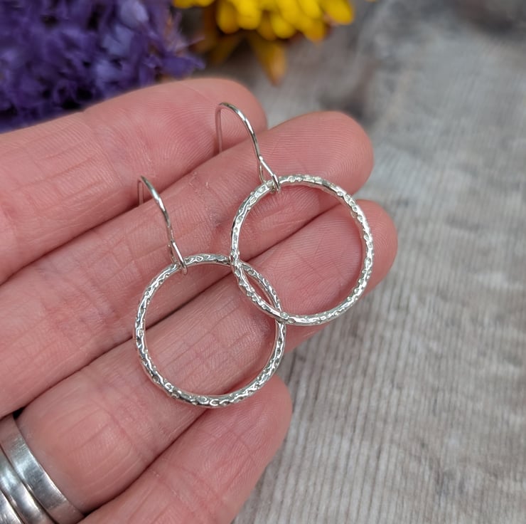 RECYCLED STERLING SILVER DOT TEXTURED CIRCLE EARRINGS