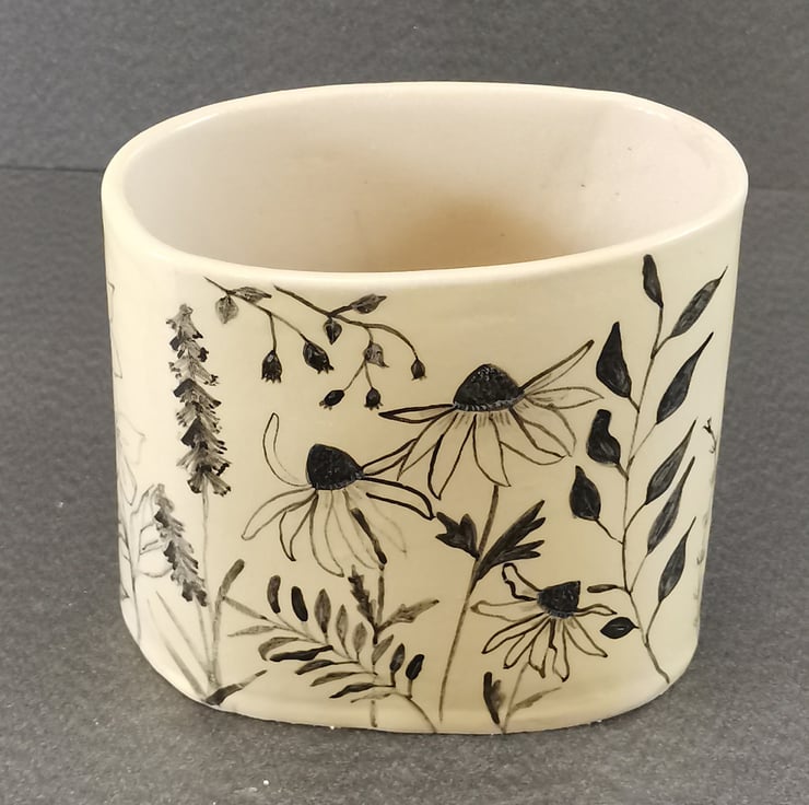 Stoneware glazed vase with hand-painted design by Kathleen Hepworth