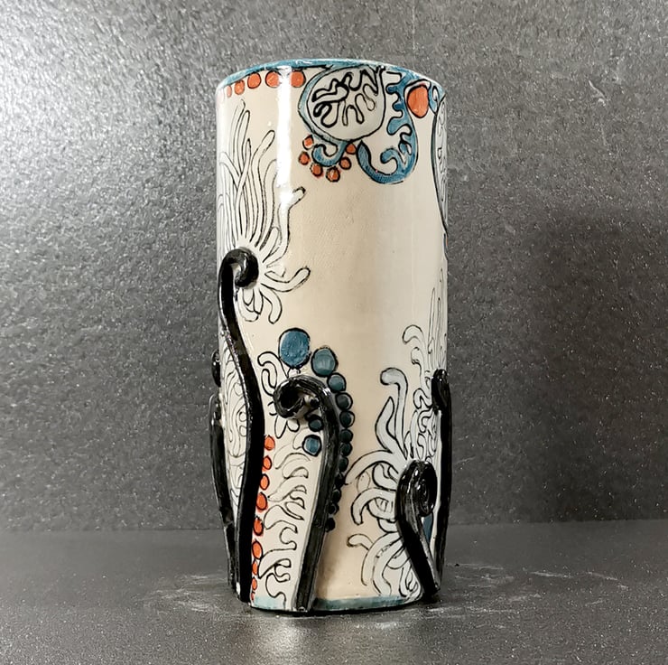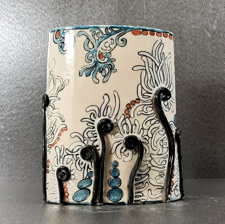 Stoneware glazed Vase with hand-painted design by Kathleen Hepworth