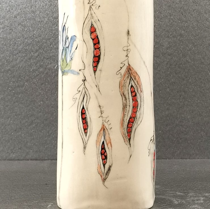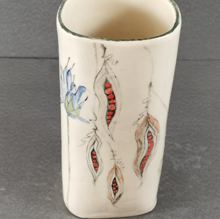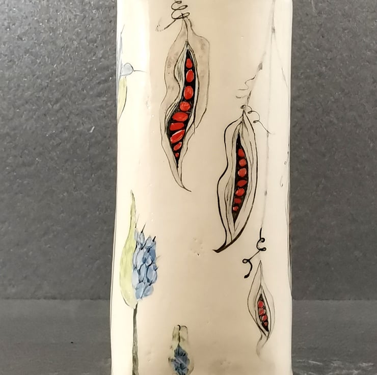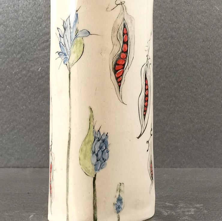 Stoneware vase with hand-painted design by Kathleen Hepworth