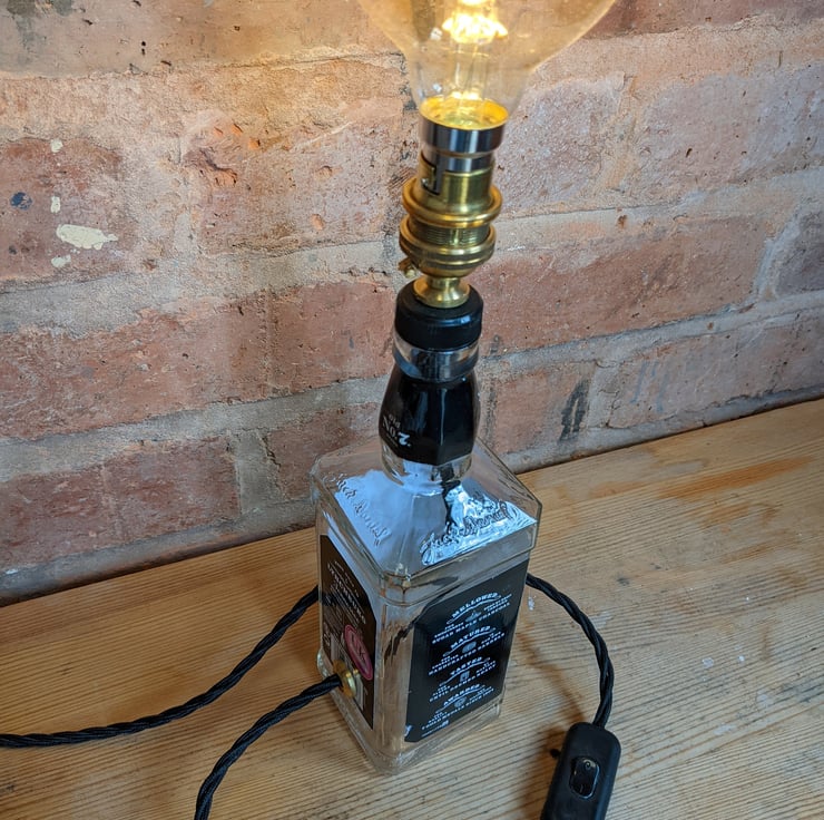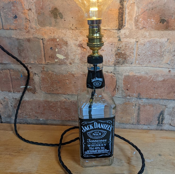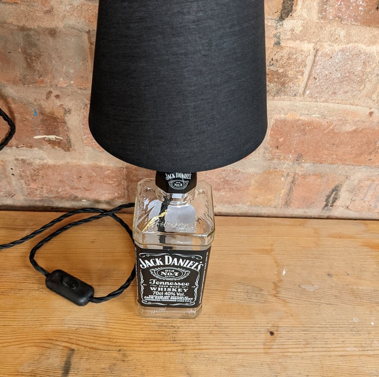 Handmade in the UK from a bottle of Jack Daniels, this unique upcycled bottle lamp is the perfect addition to the home of any JD lover.