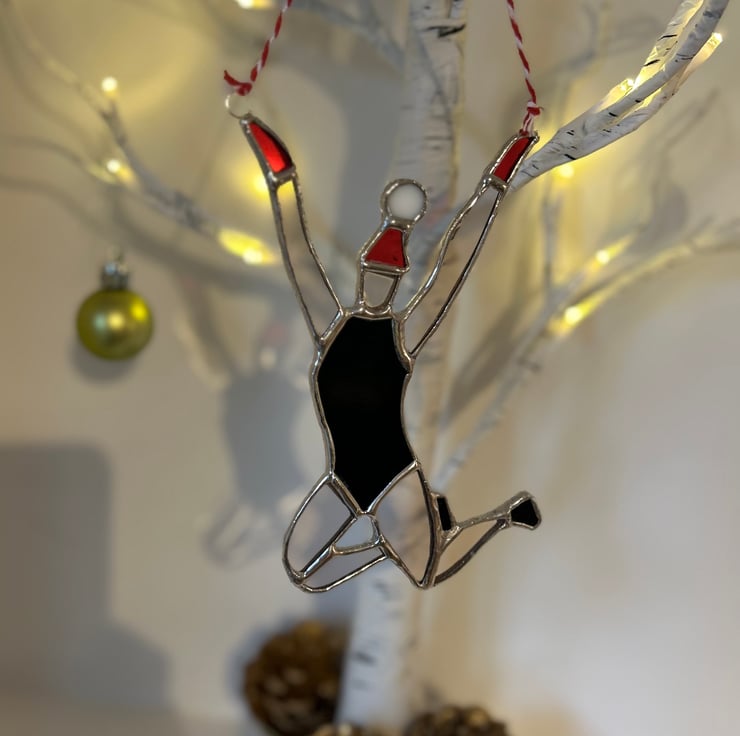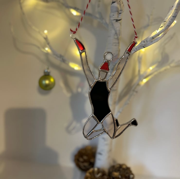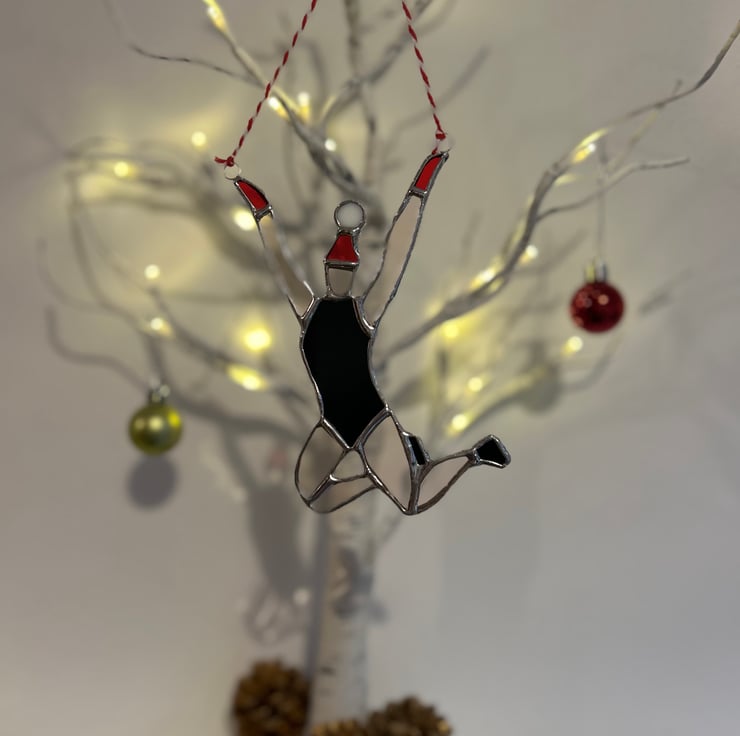 Dive into the festive spirit with our Christmas Jumping Wild Swimmer ornament, vibrant and new for Christmas 2025! This unique piece offers a fun twist on the standard, showcasing a wild swimmer in a sleek black swimsuit with a cheerful red bobble hat.