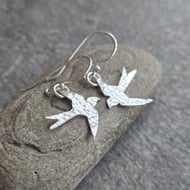 Two sterling silver bangles with different hammer textures - one a flat facet texture, the other a heavily dimpled texture - are linked together to form this set. Polished to a high shine, the textures catch the light beautifully.