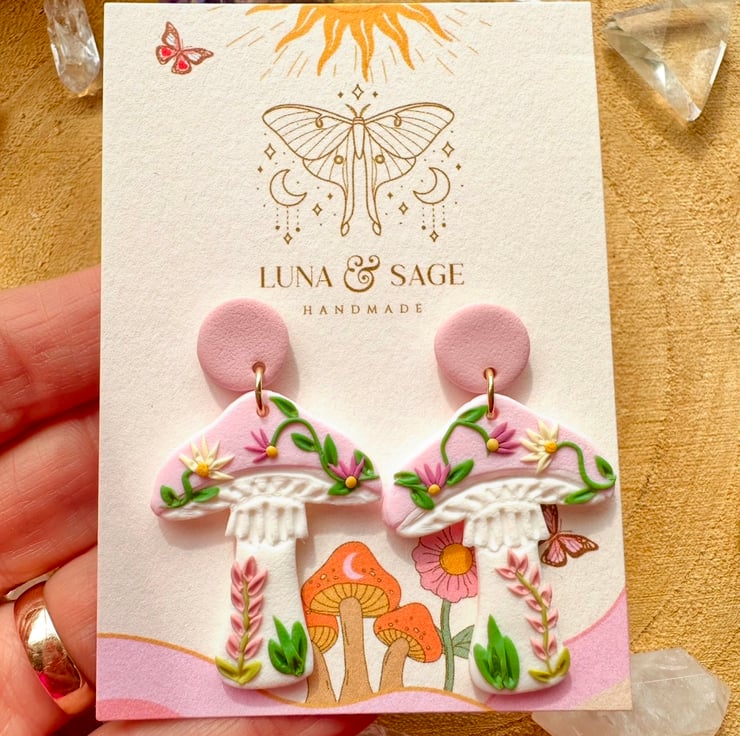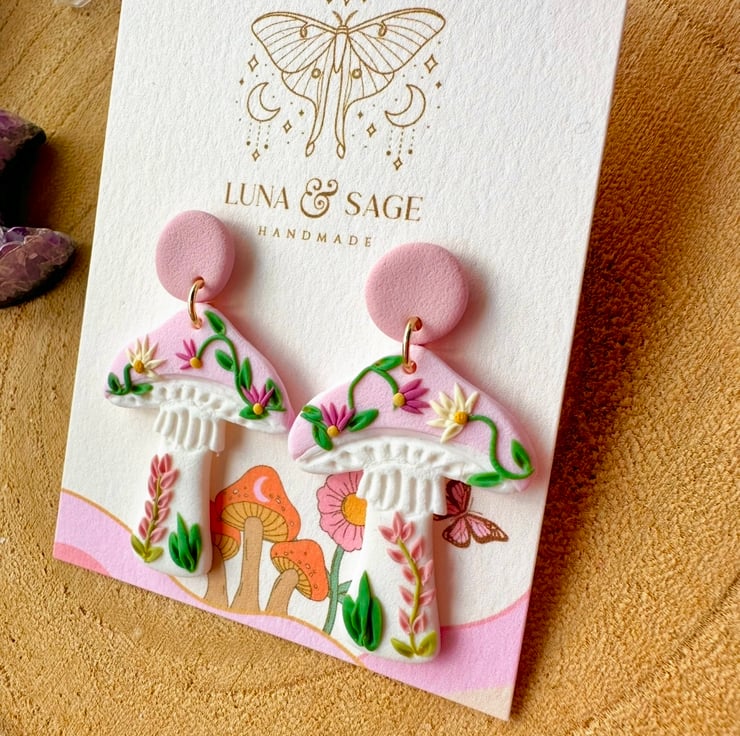 Mushroom Earrings,Wildflower Polymer Clay Earrings, Folklore,Fairytale jewellery