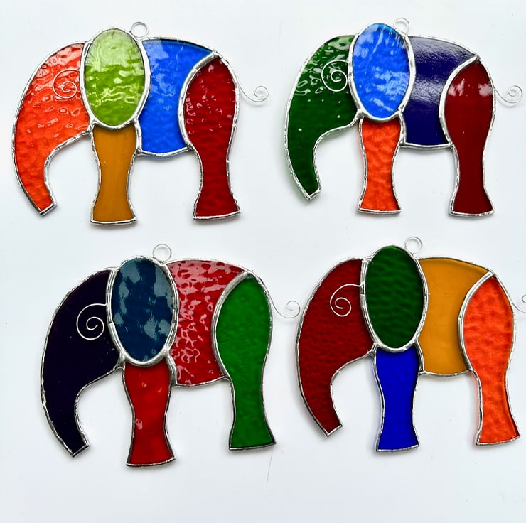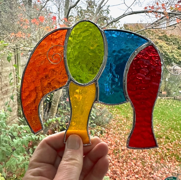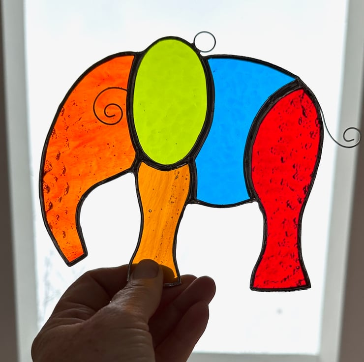 Elephant suncatcher made from beautiful stained glass by Carole’s Glass.