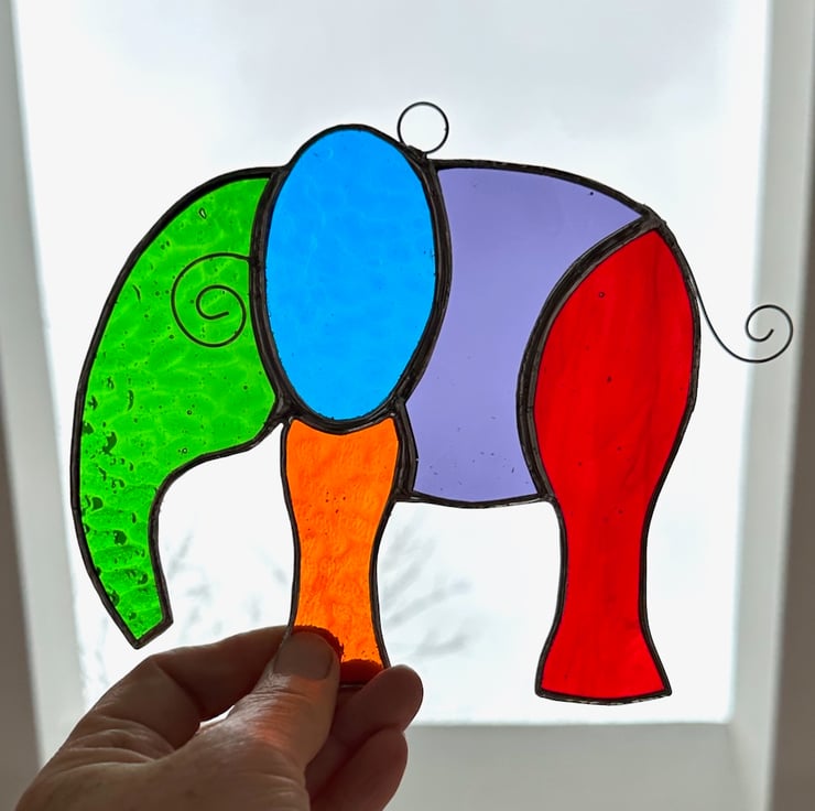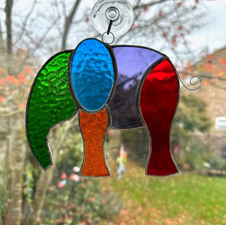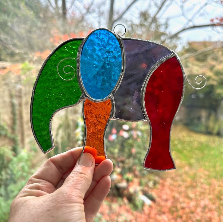 Elephant suncatcher made from beautiful stained glass by Carole’s Glass.