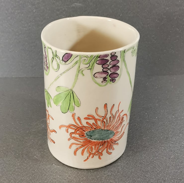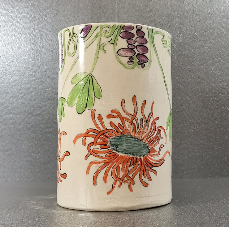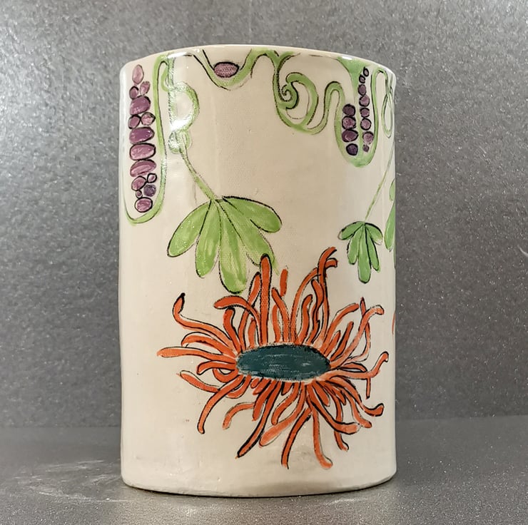 Stoneware ceramic vase, handmade & handpainted by Kathleen Hepworth of KissedFrog Pottery.