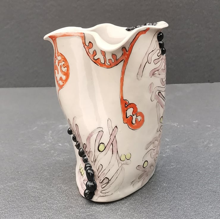 Stoneware vase with hand-painted design by Kathleen Hepworth