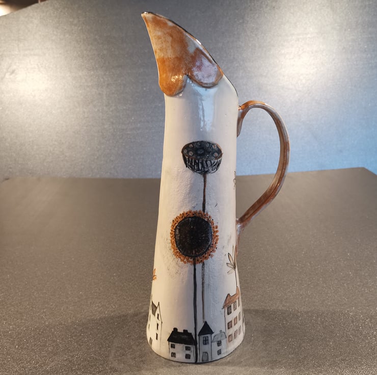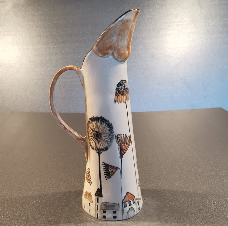 Stoneware glazed Jug with hand-painted design by Kathleen Hepworth