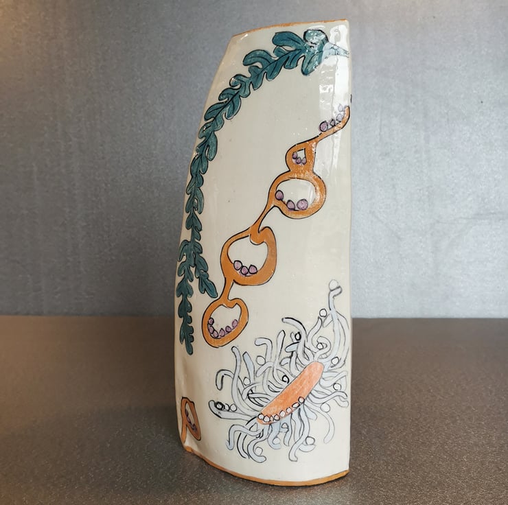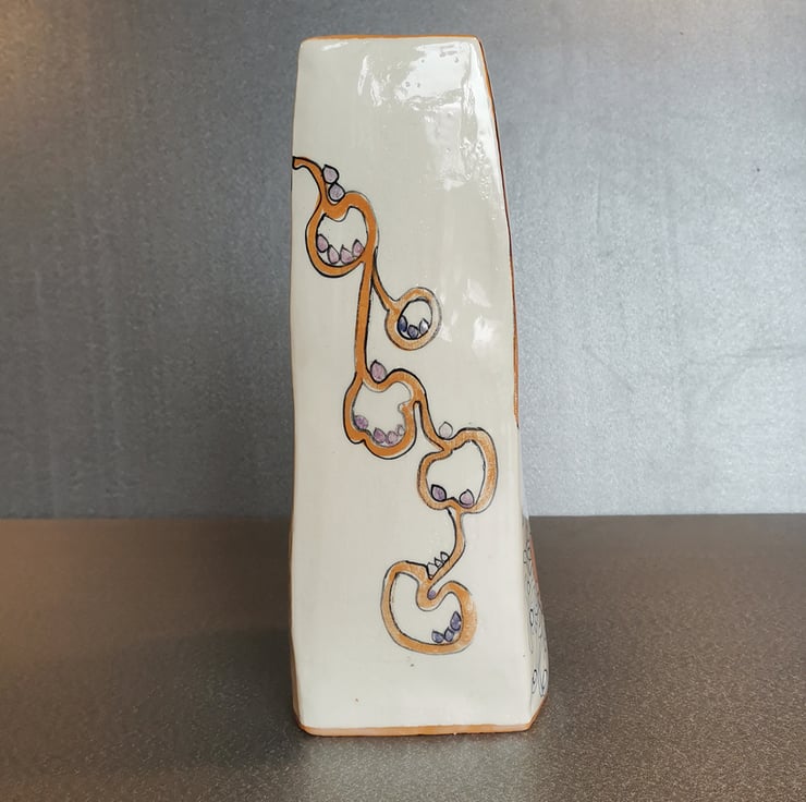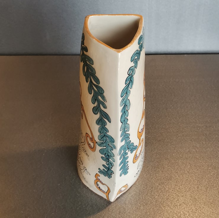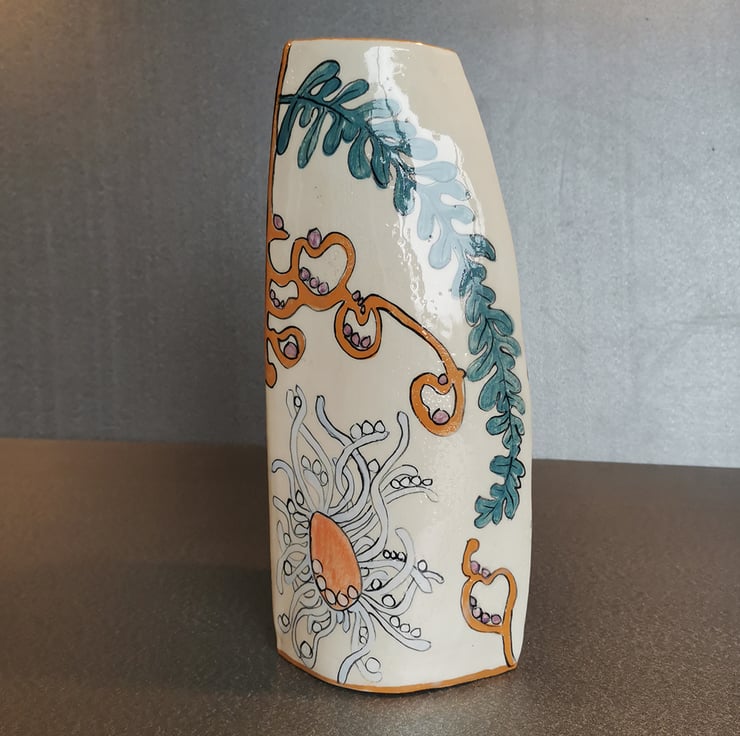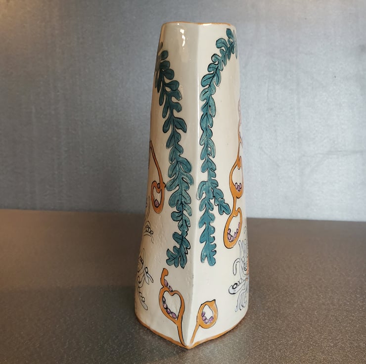 Handmade stoneware glazed Vase with hand-painted design by Kathleen Hepworth