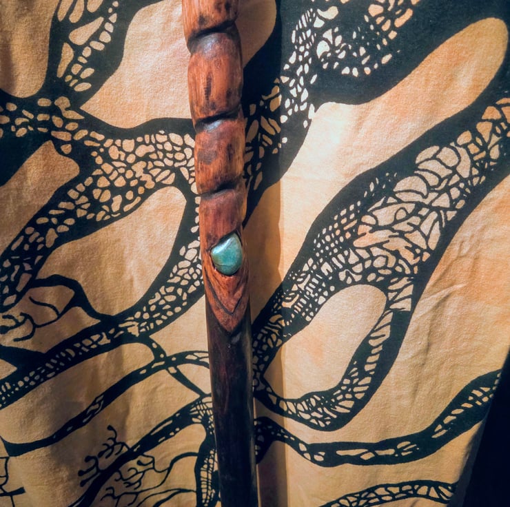 Each staff is a one-of-a-kind creation — no two spirits are ever the same. Born from the wild and shaped with intention, this piece carries the forest’s energy and power. The pictures do not do it justice — it truly has to be seen and felt in person. You will not be disappointed.