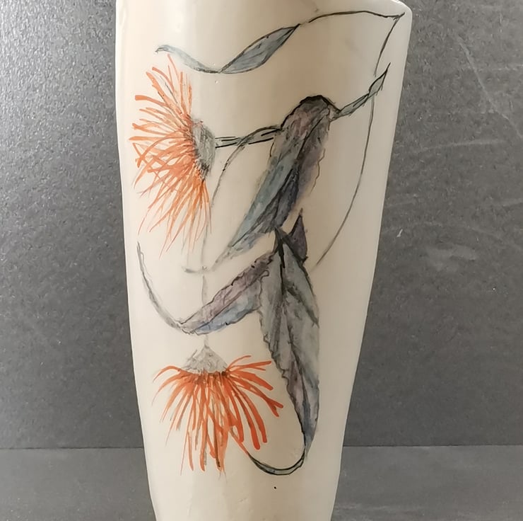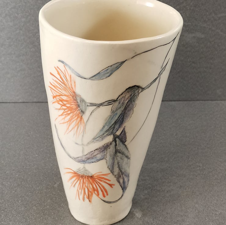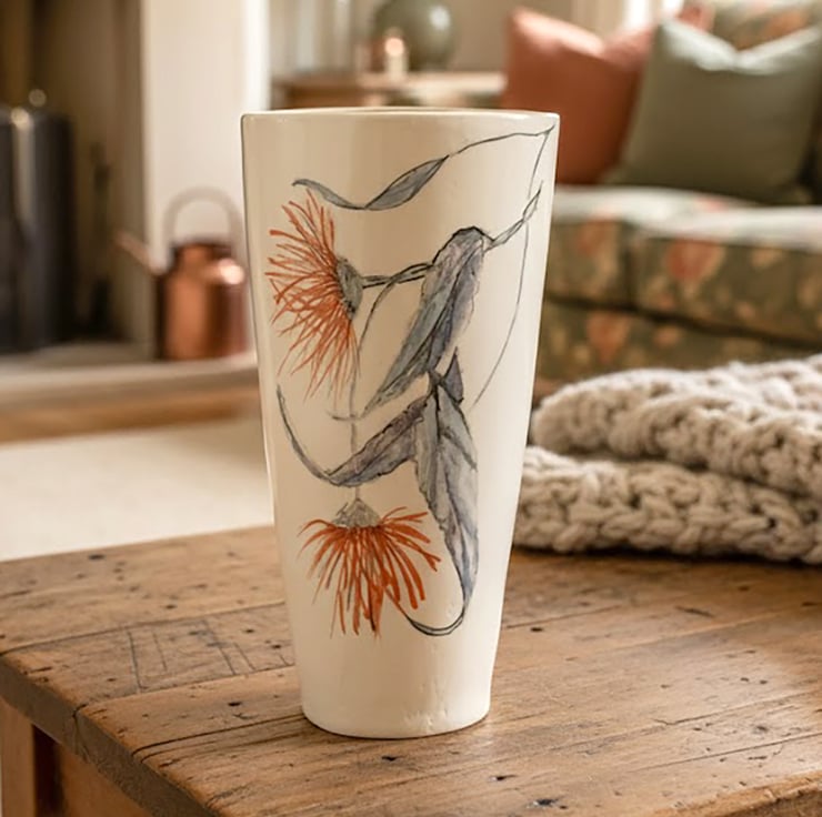 Stoneware glazed vase with hand-painted design by Kathleen Hepworth