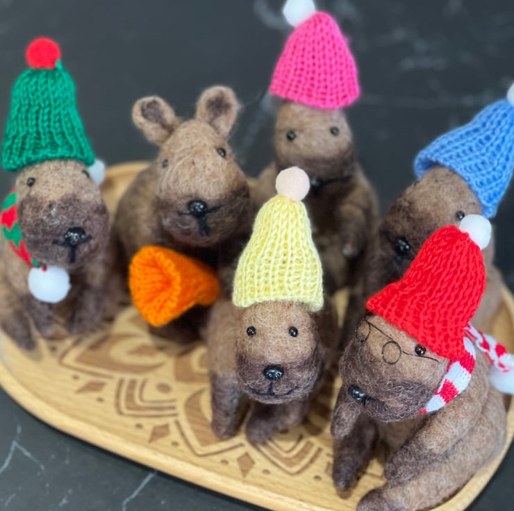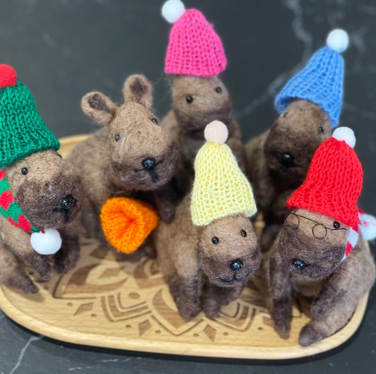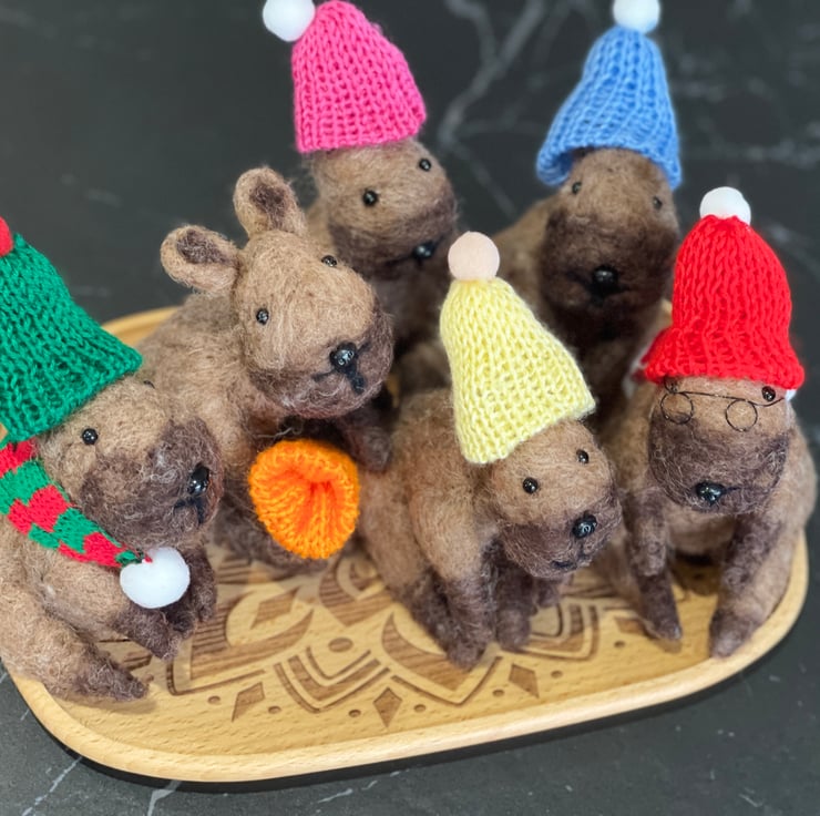 Say hello to this cheerful little wool felt capybara, lovingly handmade using soft natural wool and plenty of care. Each one is needle-felted by hand, giving it its own gentle personality — no two are ever quite the same.