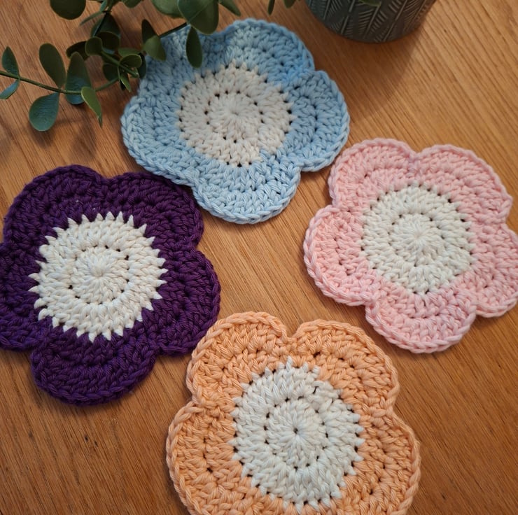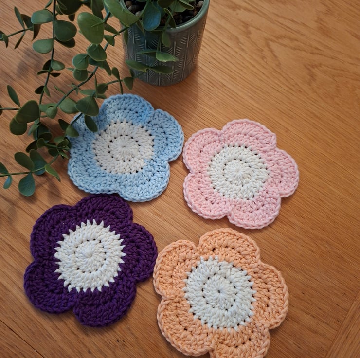 A set of 4 pretty flower shaped drinks coasters.