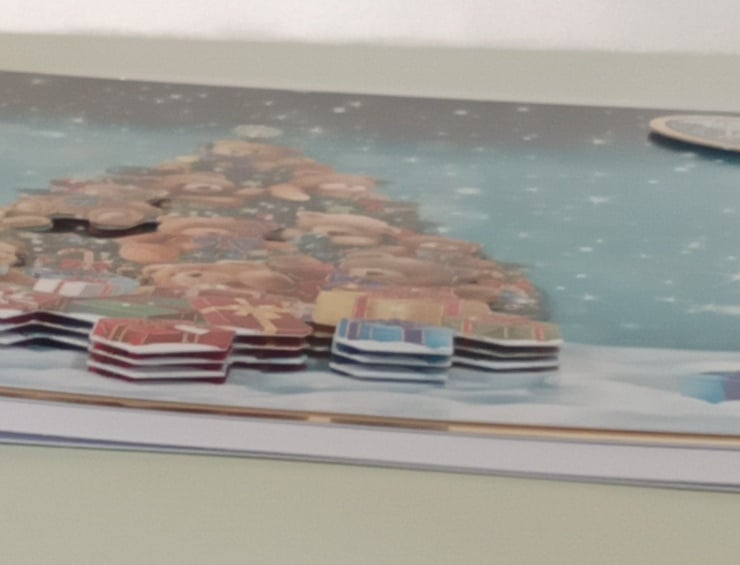 This card has an image of a Christmas Tree in the snow with Teddy Bears peeping out from the branches and Christmas Gifts scattered on the snowy ground. The Christmas tree and teddies have been layered up using foam pads to giveva 3D appearance.
